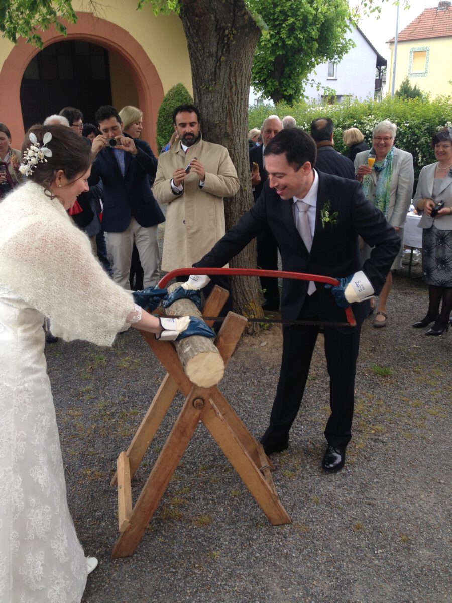 Ist der Stamm besonders dick, dürfen die Trauzeugen kräftig mit anpacken.